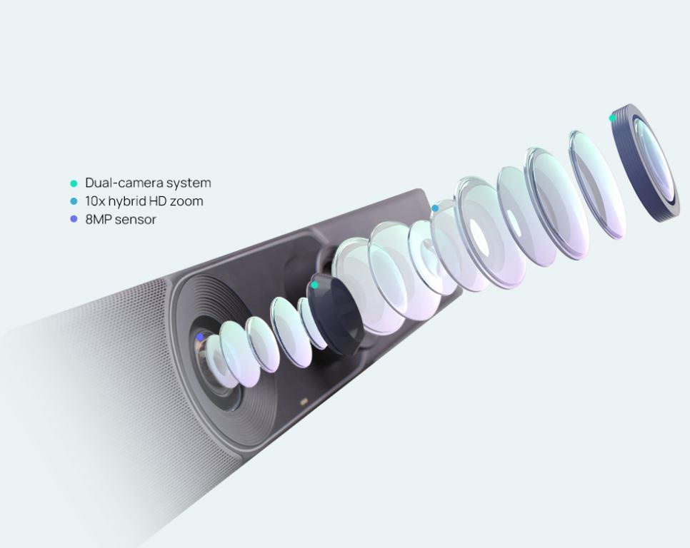 MeetingBar A30 dual-camera system is perfect for medium rooms. It features an optical camera with 10x hybrid zoom and an 8-megapixel digital camera with a 120° field of view, delivering a clear visual experience with depth, which is unable to be achieved with a single camera.