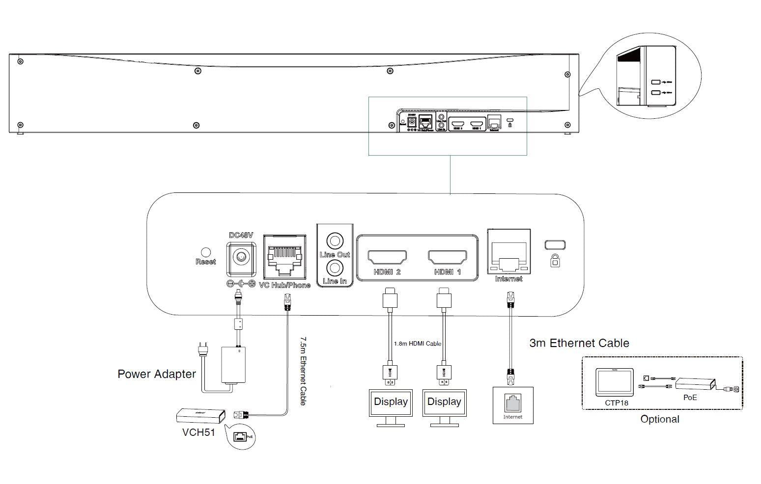 Designed with simplicity, Yealink MeetingBar A30 integrates the camera, microphone and speakers into an all-in-one system. No PC or individual components are required, allowing plug-and-play for a dedicated small meeting room setup within minutes, greatly reducing the time needed for deployment and management. In addition, connecting to a CTP18 touch panel can be realized for better meeting control.